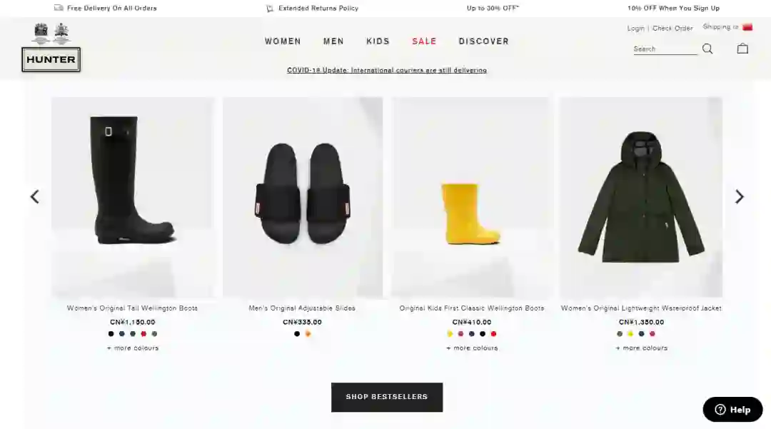 Hunter Boots 已经发展成一个多渠道并进和跨地区经营的品牌,Hunter Boots 的线上销售额占整体销售额的30%。