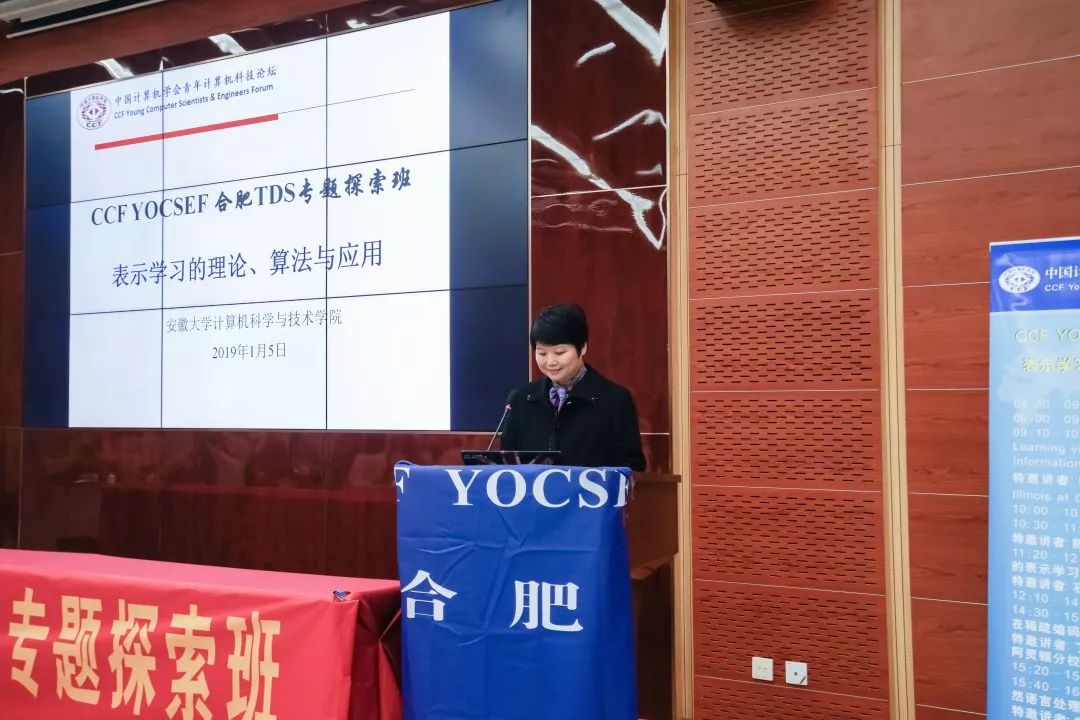 2019年1月5日,CCF YOCSEF合肥在安徽大学磬苑校区图书馆文典阁一楼报告厅成功举办TDS(Theme Discovery Symposium)专题探索班“表示学习的理论、算法与应用”,吸引了来自国内外高校、科研院所、企业以及全国各地YOCSEF分论坛等230余人参加此次探索班。本次专题探索班是CCF YOCSEF合肥2019-2020年度换届选举系列活动之一,由来自安徽大学的CCF YOCSEF合肥主席赵姝和来自合肥师范学院的CCF YOCSEF合肥副主席谢飞担任执行主席,邀请到了机器学习领域6位重量级的专家学者做报告,围绕表示学习的理论基础和最新研究成果,以及表示学习在社交网络、自然语言处理等领域的应用开展交流和讨论。