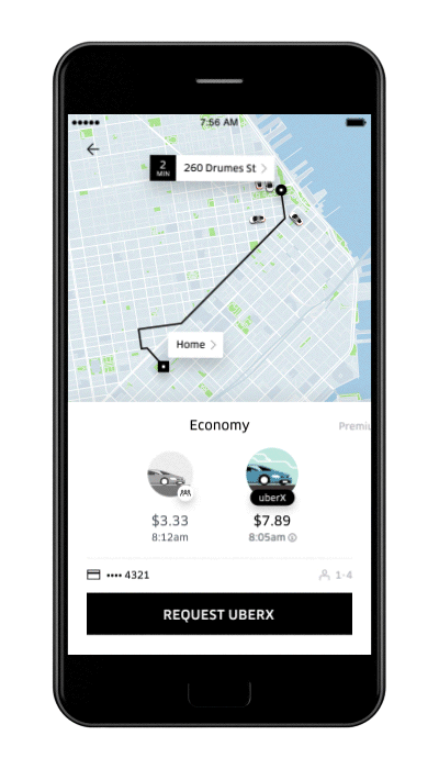这是 Uber 中预订出租车的流程是线性操作流的一个例子: