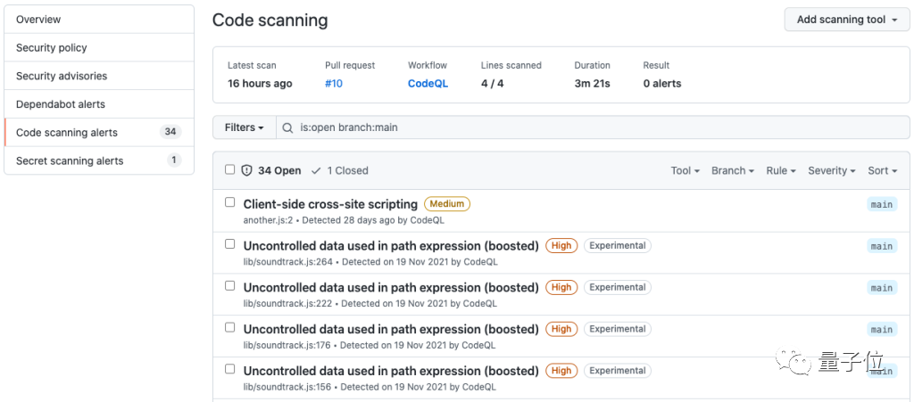 GitHub的CodeQL代码扫描对于公共存储库是免费的。