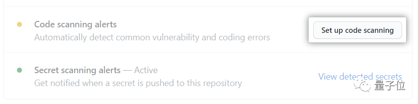 3、在Code scanning alerts右侧,点击Set up code scanning。如果缺少这一项,需要由存储库管理员启用GitHub高级安全性。