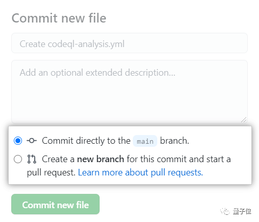 6、选择直接提交到默认分支,还是创建一个新分支并启动拉取请求。
