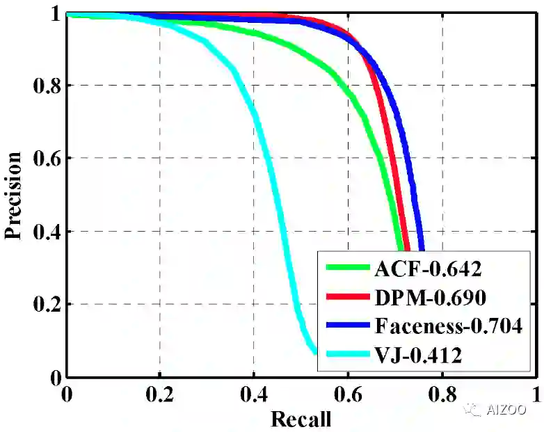 在人脸检测最常用的数据集——WIDER Face数据集的评估结果上来看,使用深度学习的模型在准确率和召回率上极大的超过了传统算法。下图的青线是Viola-Jones的Precision-Recall图。