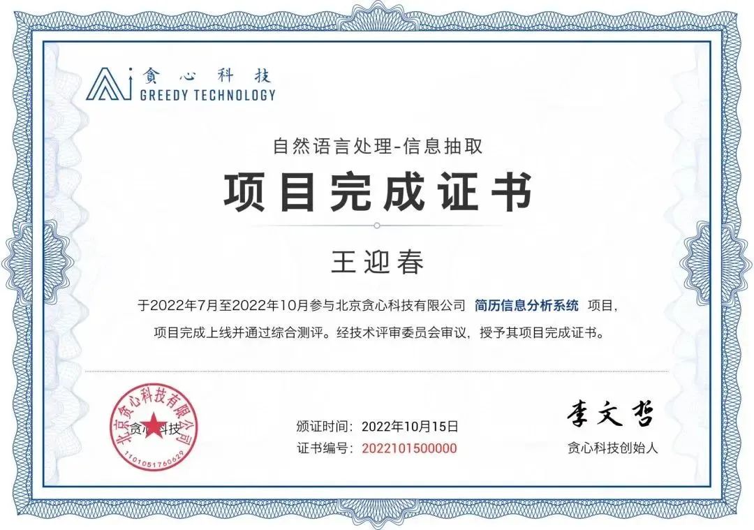 完成全部实训项目任务,且通过评测可以获得实训项目证书认证,为项目经历背书