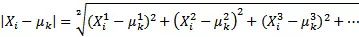 μij:示例i的第j个特征的聚类中心(类似于X,因为聚类中心是随机选择的)