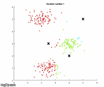 它检查每一个数据样本,会根据它们与开始随机选择的聚类中心的相似程度,来对它们进行分类。