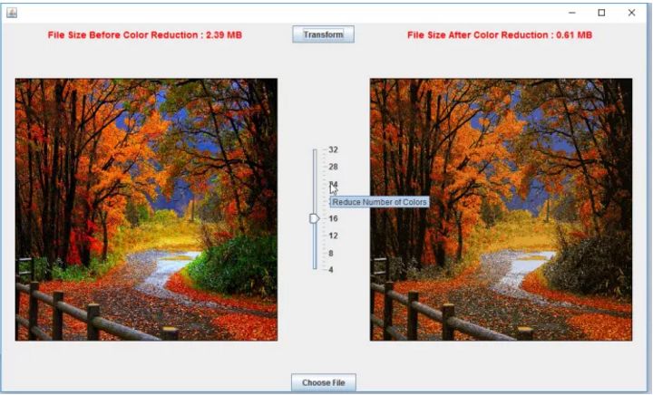 执行算法的最简单方法是下载JAR包,并使用自己的图像来执行(需要安装Java)。我的电脑大约需要花一分钟的时间来运行,使颜色减少到16种(高CPU和内存会更好,因为Spark是并行运行的)。在用户界面中,可以选择想要尝试的图像文件,也可以选择减少图像上颜色的数量。下面是一个用户界面和结果的例子: