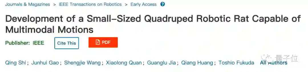这篇论文由石青导师黄强、中科院外籍院士福田敏男,以及石青带领的仿生机器人团队共同完成。