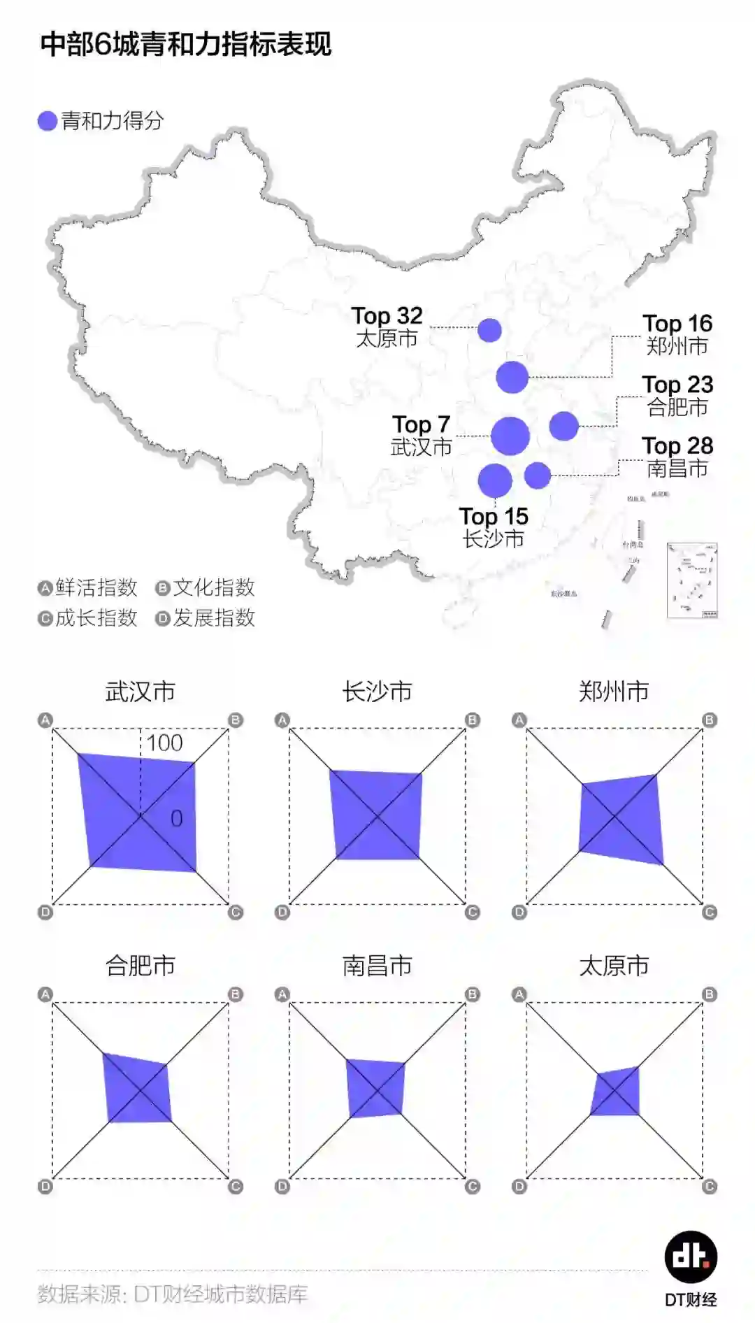 中部城市对年轻人失去吸引力了吗?从主要城市的青和力排名来看,并不是。