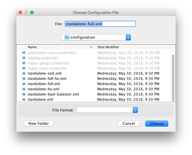 正如 WildFly 发行说明所示,如果您想要 Java EE/Jakarta EE 8 支持,则应选择 standalone-ee8.xml 作为域配置。