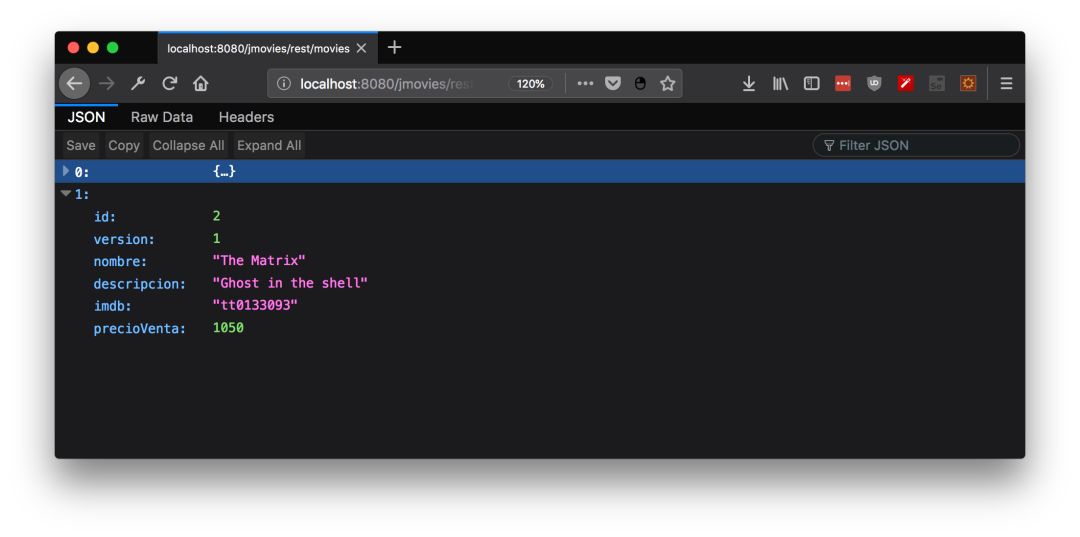 为了测试 NetBeans 设置,我添加了一个新的应用程序服务器(WildFly Application Server),并从 jEspañol 演示文稿中运行了 Java EE/Jakarta EE 8 REST-CRUD 应用程序。
