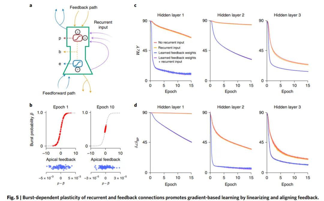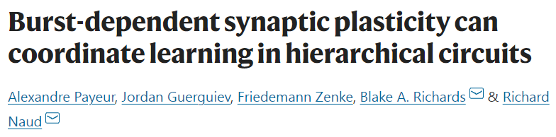 今年 5 月发表在《自然 - 神经科学》上的一篇论文《Burst-dependent synaptic plasticity can coordinate learning in hierarchical circuits》中,研究者们终于找到了可以生活在活体大脑中并进行实时工作的等价物。