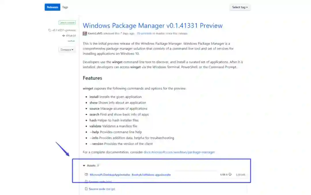 另外,你也可以直接去 WinGet 的官方 GitHub 仓库,在 Release 页面手动下载 WinGet 的安装程序进行手动安装。