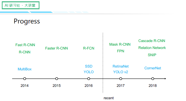 接下来介绍一下物体检测在深度学习出现以来的发展情况。