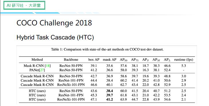 第一,针对 detection 和 segmentation,我们提出了 Hybrid Task Cascade,简称 HTC;