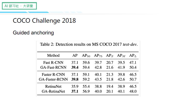 第二,针对 proposal 方面,我们提出了 Guided Anchoring,它是为了取代 sliding window 的 anchor;