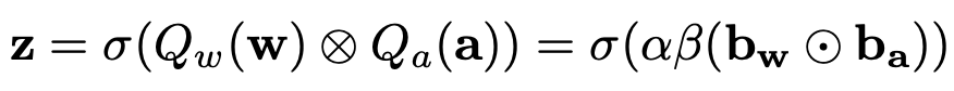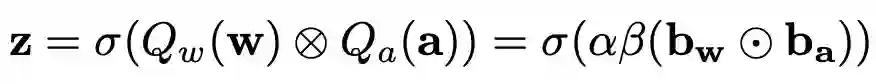 代表二值化权重(卷积核)和二值化激活量的张量,相应的尺度因子分别为 α 和 β,用于二值化得到