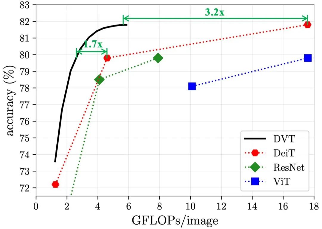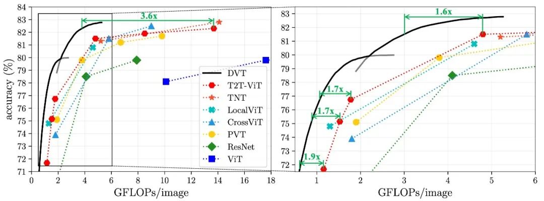 ▲ 图9 DVT (DeiT) 在ImageNet上的计算效率