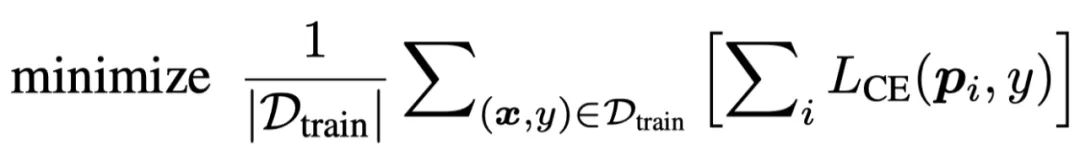 在训练时,论文简单地训练网络在所有出口都取得正确的预测结果,训练目标如下式所示。其中