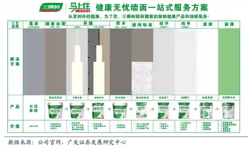 从此,三棵树就不仅仅是一个涂料生产商了,而是一个能给消费者提供“涂料、施工、服务咨询”等全套服务的品牌。