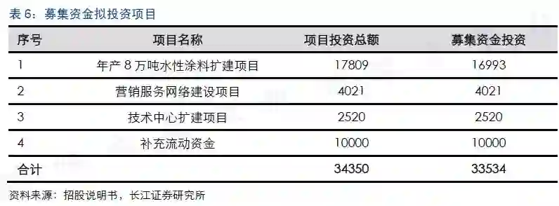 未上市前,三棵树的水性漆生产线是长期处于超负荷运作状态的,于是上市后,马上就拿出了一个8万吨水性漆的扩建项目。