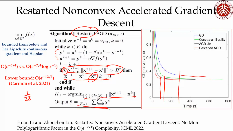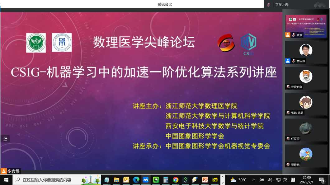 最后林宙辰教授又讲授了他的最新工作——基于重启的非凸优化一阶加速算法,该工作发表在今年ICML会议上,形式非常简单且把现有最优复杂度中的给取消了,首次达到了。林宙辰教授讲解了该算法的主要步骤和设计思想,构思巧妙,颇具启发性。 演讲结束后,参加线上讲座的同学和老师踊跃提问,林宙辰教授耐心回答了的每个问题。整个讲座生动有趣,内容丰富,原定一个小时的讲座时间又延长到近一个半小时。图为林宙辰教授专著《机器学习中的加速一阶优化算法》的英文版和中文版,以及刚出版的新书《Alternating Direction Method of Multipliers for Machine Learning》。本系列讲座线上直播信息为: