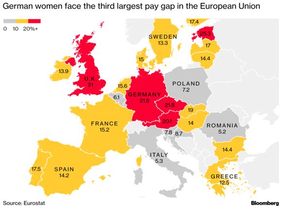 德国的性别薪酬差距在整个欧盟地区排名第三。来源:欧盟统计局