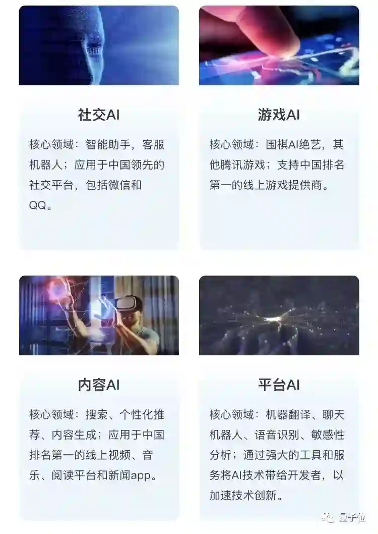 在应用层面,我们有三个重点方向,就是游戏AI、社交AI、和内容AI。我们选择这三个重点方向主要因为它们和腾讯的业务比较契合。