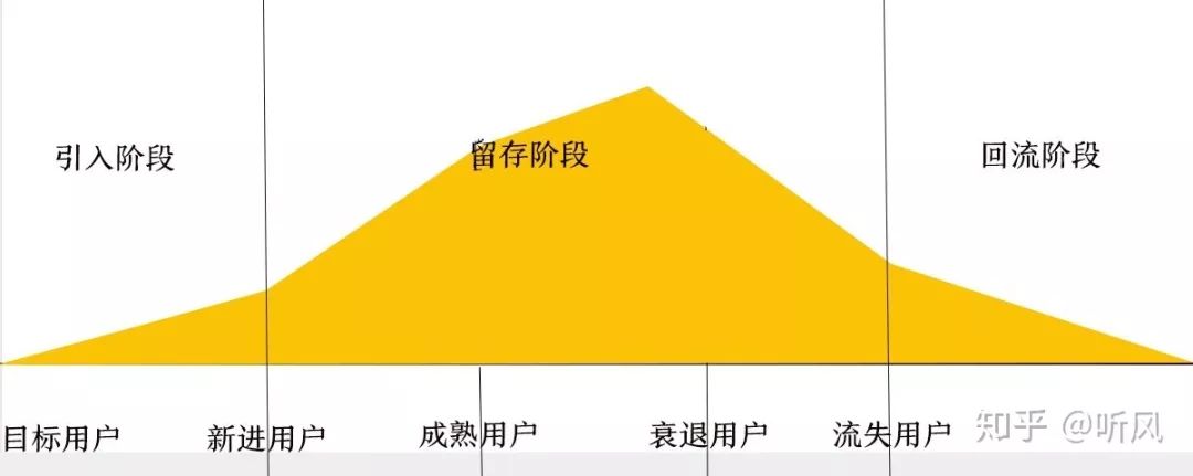不管是产品还是社区,用户都会存在生命周期,我们可以根据用户从被吸引进社区到最后离开社区而将其分成目标用户、新进用户、成熟用户、衰退用户以及流失用户。