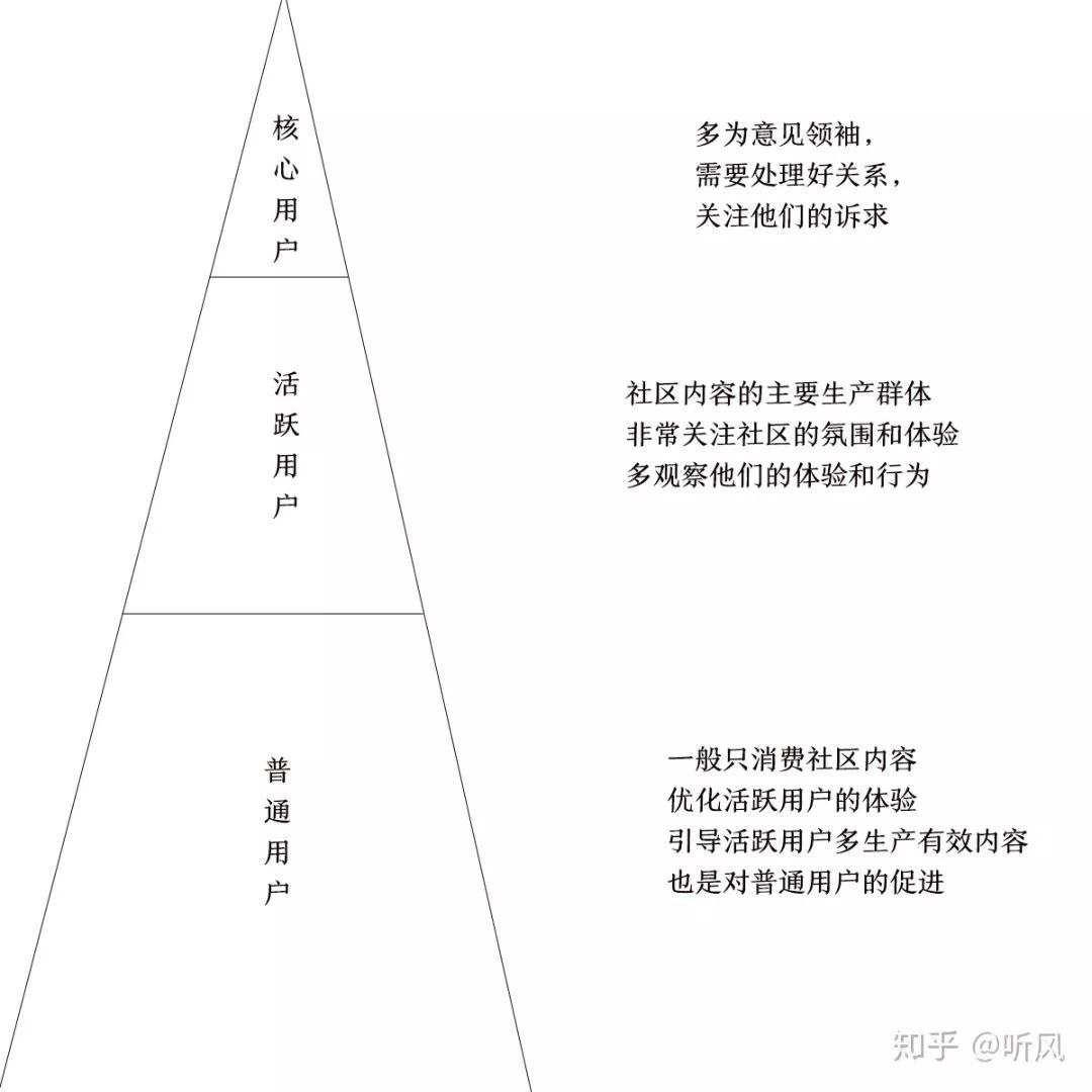 在运营这个阶段的用户时,我们需要根据社区特点进行用户分层,比如分为 KOL/核心用户、活跃用户以及普通用户,然后对不同层级的用户进行不同的运营操作(切记一定要按照自己的运营目的和社区特点进行分层,没有固定的模型,不要盲目照搬)。