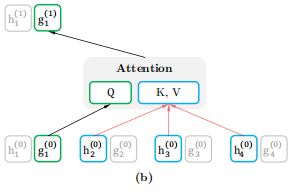 。对于每个self-attention层,m=1,…,M,这两个表示流是用一组共享参数(如图(a)和(b)所示)进行示意性更新的,中q、k、v表示注意力操作中的查询、键和值。内容表示的更新规则与标准的self-attention完全相同,因此在微调期间,我们可以简单地删除查询流。