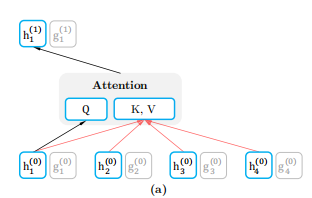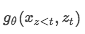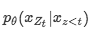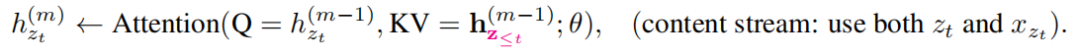 如上图所示当作为内容表示时 ,简称h_zt,其作用与transformer标准隐藏状态相似。这种表示同时对上下文和x_zt本身进行编码。自己的context embedding参与到了计算。公式如下: