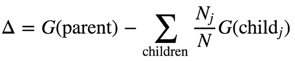 根据我们选择的分支策略,我们会有每个子集的基尼系数值,依靠节点后的基尼系数值,我们可以定义信息增益。
