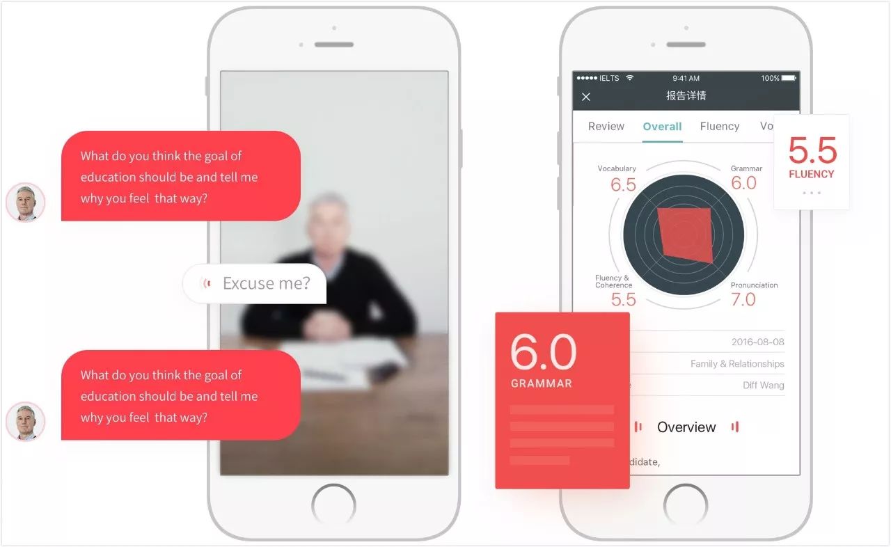 流利说的明星产品之一「雅思流利说」就运用了这项技术。我们知道,雅思考试都是开放性命题,考官会提出相应的问题,参加考试的同学根据这个问题来描述。这里面就涉及到两个问题:第一,要用语音识别引擎去识别同学说了什么;第二,去理解语音识别出来的内容,分析学生的词汇量、语法水平,更多的自然语言理解。