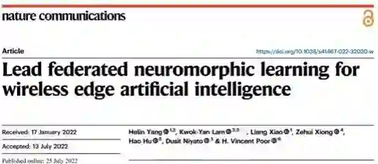 Helin Yang, Kwok-Yan Lam*, Liang Xiao, Zehui Xiong, Hao Hu, Dusit Niyato and H. Vincent Poor, Lead federated neuromorphic learning for wireless edge artificial intelligence.Nature Communication13,4269 (2022).