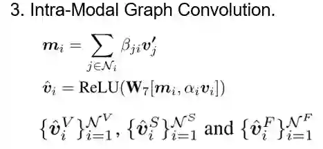跨模态的知识推理是基于part2模态内的知识选择的结果。考虑到信息的模糊性,不同图很难显式地对齐,所以作者采用一种隐式的基于注意力机制的异构图卷积网络方法来关联不同模态的信息,从不同层的图中自适应地收集互补线索并进行汇聚。包括视觉到事实的卷积和语义到事实的卷积。