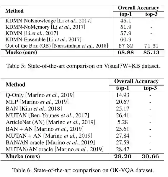 [1] Zhu Z, Yu J, Wang Y, et al. Mucko: Multi-Layer Cross-Modal Knowledge Reasoning for Fact-based VisualQuestion Answering[J]. arXiv.