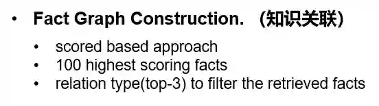 事实图则包含图像对应的外部知识,它的构造思想参考了out of the box 模型。使用相似性评分技术,根据图像和问题从事实空间获得top100的相关事实三元组(这里的事实空间是Conceptnet),然后根据问题预测出的top3 Relation 类型筛选一遍。保留剩下Relations 中符合要求的三元组Facts,最后自然构成图结构。其中节点和边的信息同样用GloVe词向量进行初始化的。这样以来得到了一个多模态图。