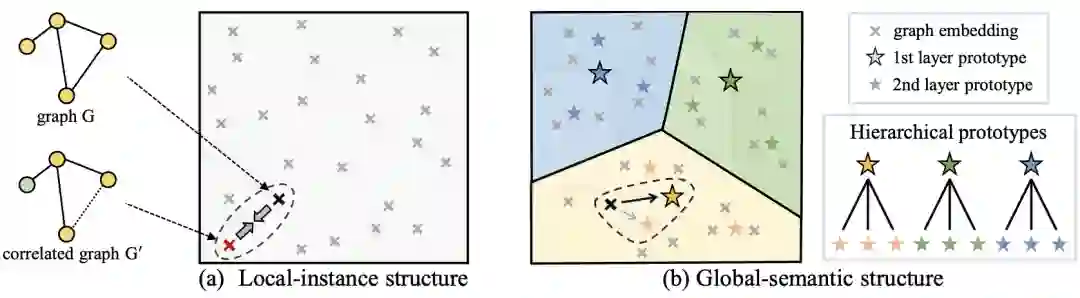 发表于 ICML 2021 的论文 Self-supervised Graph-level Representation Learning with Local and Global Structure 假设图的数据集中存在全局的、层次性的类别关联,并引入层次化的 Prototype 的概念,除了进行图表示之间的对比学习,还进行图表示与 prototype 表示之间的对比学习。该算法的 prototype 通过 EM 算法进行优化。