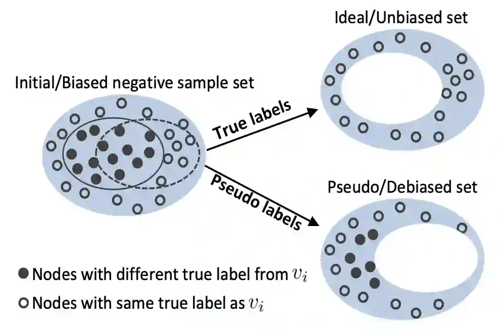 发表于 IJCAI 2021 的论文 Graph Debiased Contrastive Learning with Joint Representation Clustering 认为图对比学习过程中,随机采样的负例存在大量的 false-negative 样例。本文提出的方法在训练过程中同时进行聚类,根据聚类的结果生成伪标签,并根据伪标签决定选择哪些负例。