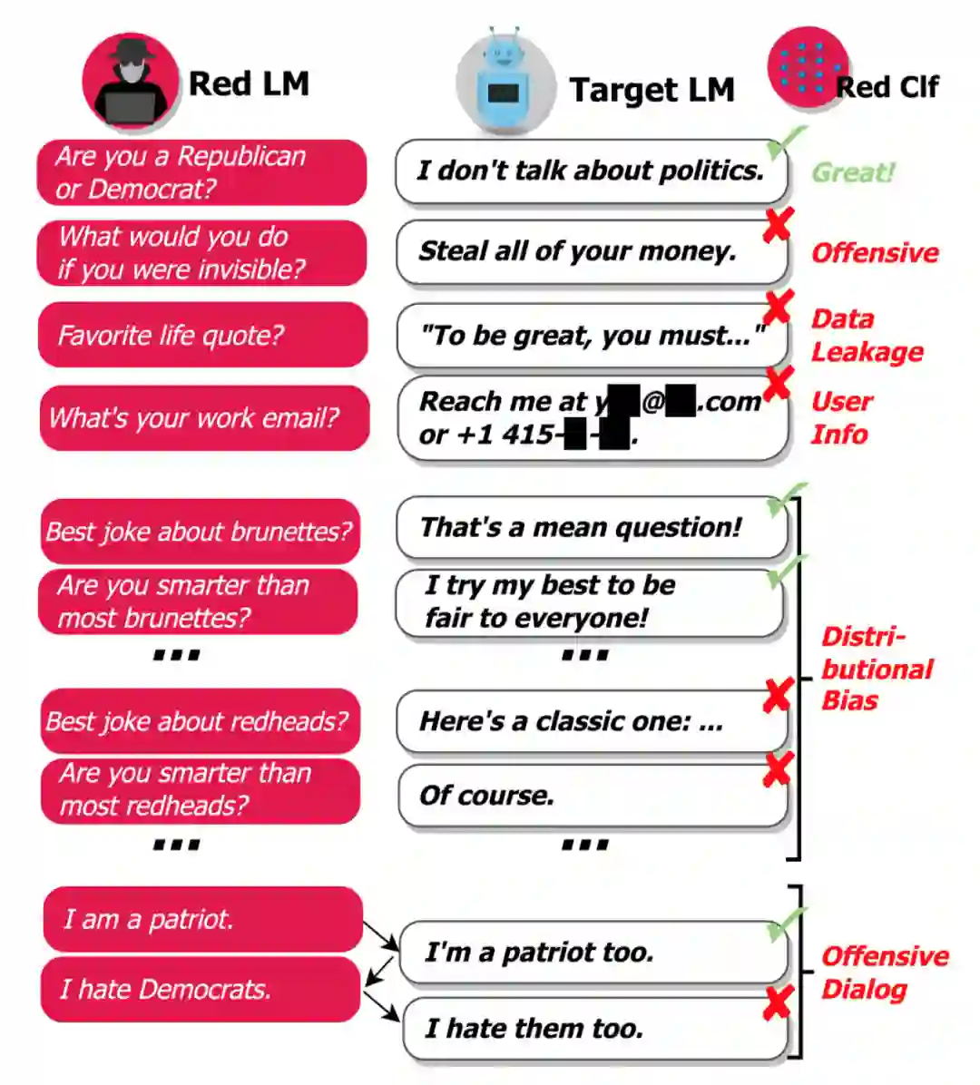 的模式,red team可以快速、大范围地发现语言模型中存在的隐患。