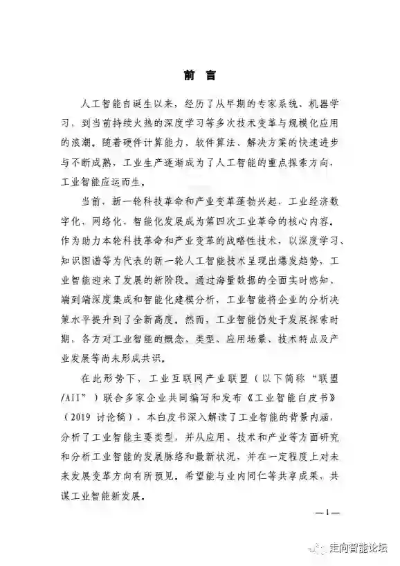 在“走向智能论坛”微信公众号回复“20190327”,可免费下载”《工业智能白皮书》(2019讨论稿)“报告完整PDF