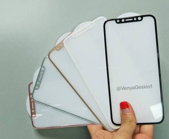 通过iPhone 8的配件我们能清楚的看到手机的样子,采用全面屏设计,相机和传感器的开孔也有了变化,整体诱惑力十足。