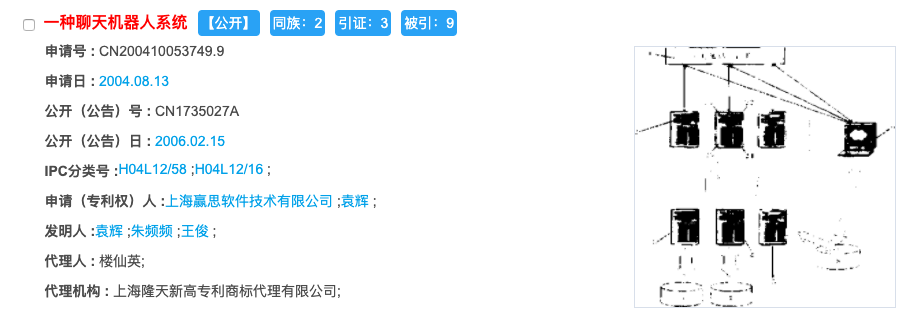 同样,从中国知识产权网站查询该专利,显示申请人和发明人是小i机器人创始人,智臻网络科技公司CEO袁辉。