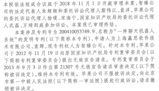 8年后小i机器人诉苹果Siri侵权案再审,判该专利有效