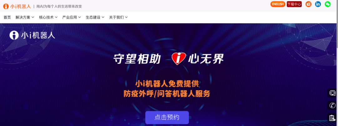小i机器人,上海智臻智能网络科技股份有限公司,2001年在上海成立,创始人和公司CEO为袁辉。官网资料显示:小i机器人基于多语种自然语言处理、深度语义交互、语音识别和机器学习等人工智能技术,为金融、政务、医疗、企业等提供服务。