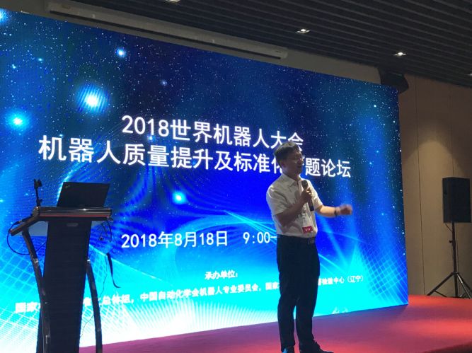 8月18日,2018世界机器人大会-机器人质量提升及标准化专题论坛、机器人法律与伦理专题论坛在北京成功召开。中国自动化学会机器人专业委员会、国家机器人标准化总体组以及国家机器人质量监督检验中心(辽宁)以世界机器人大会为平台,共同举办了此次会议。各地机器人企业、科研院所、检测认证机构代表参加了此次会议,会上就国内外机器人产业发展的最新动态及标准化工作的进展进行了精彩的汇报和研讨。