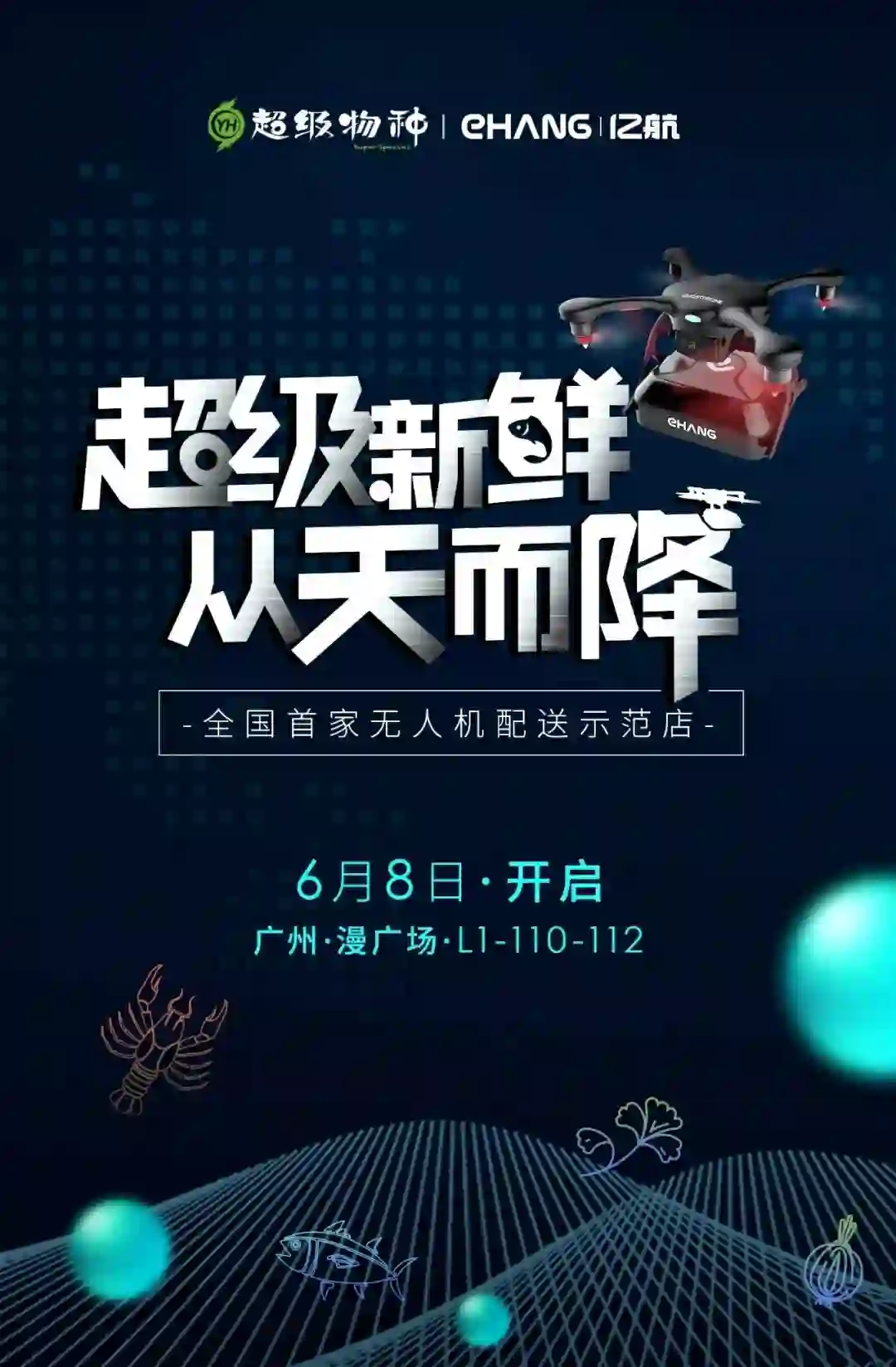 超级物种广州首店漫广场店是此次无人机配送试点合作的第一站,俗话说“食在广州”,岭南历来就是一个美食文化浓厚的地区,这也是超级物种选择广州漫广场门店,进行首个无人机配送试点的原因之一,希望用超级物种的鲜美食材加上亿航智能的科技助力,为广州人们带来更优质、新鲜的消费体验。