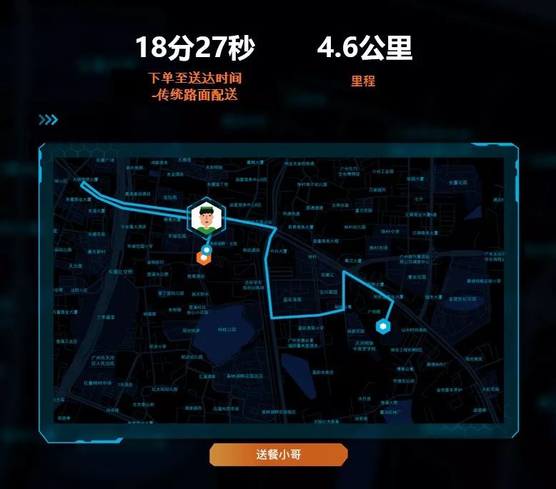 在餐饮零售场景中,确保线上订单配送的准时和新鲜,是行业致力的目标,目前外送市场主打“最快30分钟送达”。超级物种此次无人机配送,将配送时间由30分钟缩短为10-20分钟,最大程度保证生鲜商品的鲜度。相比于其它配送平台,超级物种的无人机配送有着独特的优势:门店端直接配货,小区端则由驻点的社区骑手完成最后100米配送,缩短骑手的运送距离,提高配送效率。
