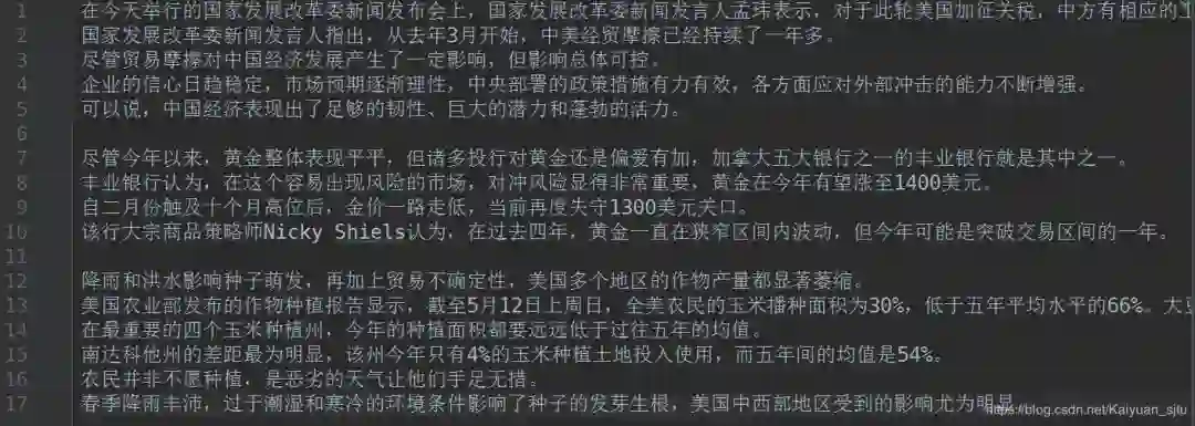 因为我之前下载的词表是中文的,所以就网上随便找了几篇新闻进行测试。结果如下这是其中的一个样例: